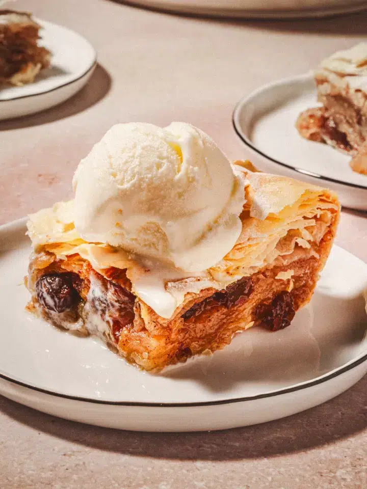 - Quick and easy – No complicated pie crust, just layers of phyllo dough and apple filling.
